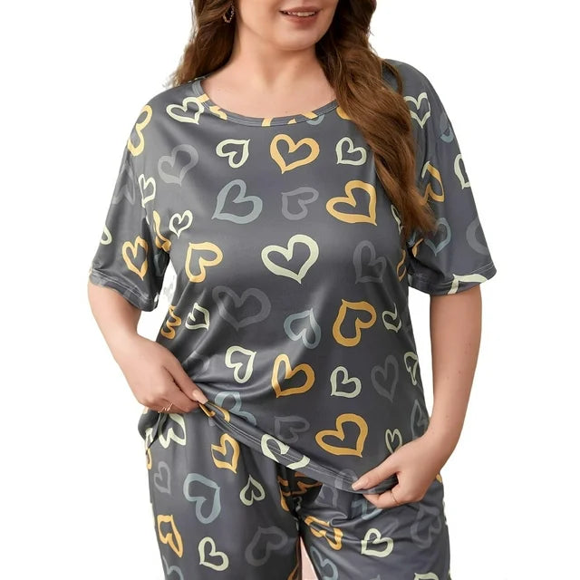 Aua Garments Grey Multi Heart Printed Womens Night Dress