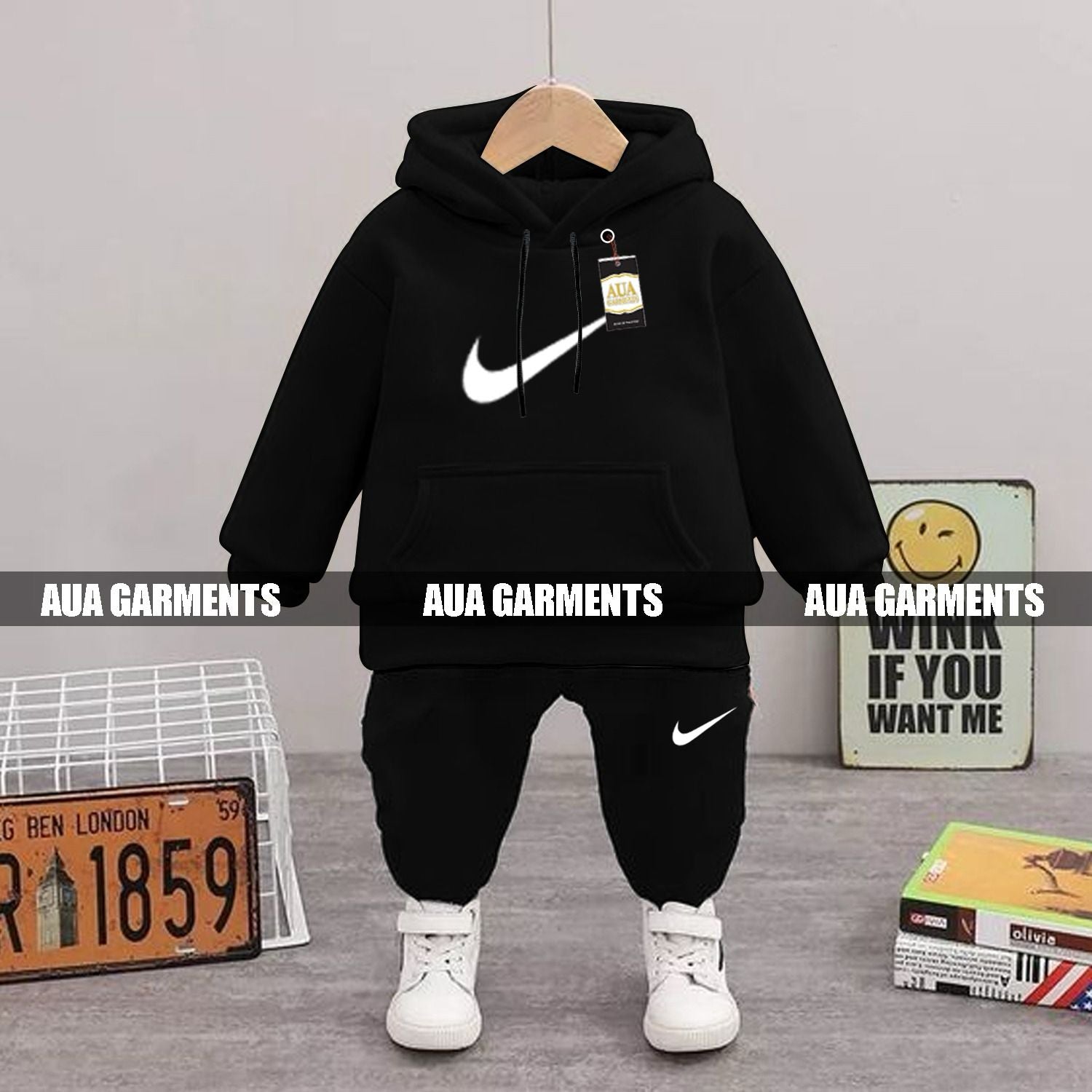 BLACK NIKE Printed Kid's Tracksuit Set with Hoodie and Trousers (1-10 Years)