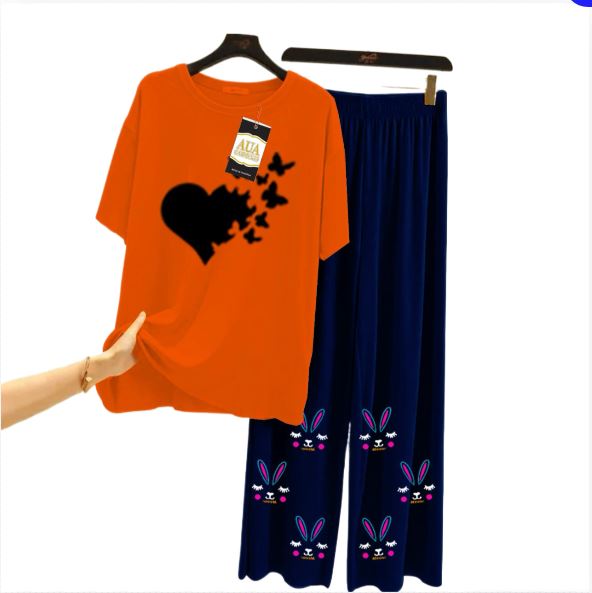 Hearts Printed 2 Piece Nightwear Sleepwear For Girls And Women